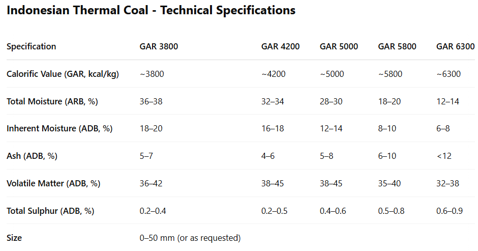 1. Thermal Coal • Common calorific value: GAR 4200 – 6300 kcal/kg • Meets technical standards for thermal power plants, cement, and light metallurgy.